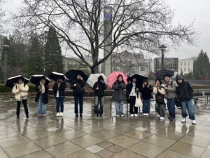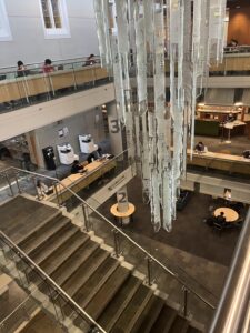 さて、本日のアクティビティではThe University of British Columbia(通称UBC)のキャンパスツアーをしました。UBCは、教育や地理、言語学、心理学など日本でも馴染みのある学科から企業とイノベーションや運動学、アジア研究などUBCならではの特色ある学科もあるそうです。また、カナダの中でも屈指の名門大学で日本でいう京都大学レベルの大学です。そんなUBCに行きましたが、まず驚いたのはその敷地の広さです。キャンパス移動するだけでも迷子になったり疲れたりしそうなぐらい広大でした。また、施設もとてもきれいでした。日本の大学にはあまり見ないようなアートのような内装で、視覚的にも楽しめる一方で採光もしっかりできているような理にかなった設備設計だと感じました。他にも、図書館の自習コーナーの一角に一台のランニングマシンが設置してあり、そこで歩きながらパソコンに向き合っていた学生さんもおられ生徒も私も驚きました。運動をすることで血流の関係によって集中力や思考力が上がるといったことも調べると出てきたので、私のクラスの教室に何かしらの運動器具を設置する日がいつか訪れるかもしれないですね。ちなみに、私自身もつい最近までは大学生でしたので、キャンパスを巡っている内に大学でひたすら中国史と漢文に向き合っていた頃を思い出しました。こうして、日本の大学だけでなく海外の大学も見ることができる経験はなかなか無いと思うので、生徒たちにとってもよい時間になったのでは無いかと思います。