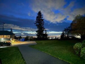 飛行機に乗った疲れが取れなかったので寝てしまいました。午前はホストファミリーに用意してもらったクロワッサンと日本から持って来たご飯とふりかけお味噌汁を食べて寝ていました。昨日もらったご飯も日本とは違う風味がしていました。午後は2時から学校のクリスマスパーティーに行きました。学校はホストファミリーの子供で女の子のアビゲルが通っている学校です。カナダの高校は12年間同じ高校で過ごしてその後大学に行くそうです。中に入ってケーキとピザを食べました。ケーキがめちゃくちゃ甘くて不思議と辛さを感じました。食べている時に、カナダや外国では周りの目は全然気にしていないように見えました。ホストファミリーと話している時も目以外を見ていないし、服装や日本に比べて目立っているかなどよりも大人でも今を楽しもうとしていました。大人が顔にペイントをしてもらいに行っていたのが驚きました。私もクラフトのワークショップをしたり、腕にペイントをしてもらったりしました。そのあと、カナダにある釧路公園につれていってもらいました。私がホームステイしているバーナビー市と釧路市が姉妹都市の提携を繋いだそうです。そこは山の上で夜のバンクーバーを見渡せてすごく綺麗でした。バンクーバーは電気代が安くてイルミネーションが街中に飾ってあるのでより綺麗でした。その後、近くのお店に行って習字を見せました。ホストマザーの名前にアナベル、クアが入っているので日本語に言い換えて「成良愛誠(なりよしゆあ)」完全に当て字にして習字で紹介しました。クアが治療するという意味なのでよくなる、アナベルが強い愛という意味です。ホストファミリーは前にも京都の留学生を迎え入れていたので特にホストマザーは今日に興味もっていてたまに日本語で話してくださいます。また、文化についての理解もあって過ごしやすいです。次に機会があったら折り紙を紹介したいです。