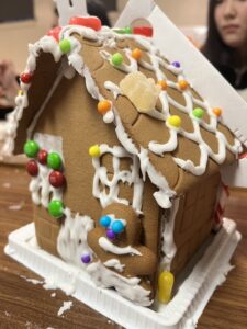 本日は、初めてセントパッツの生徒や先生方と交流をしました。セントパッツの生徒も先生たちもみんな暖かく迎えて下さいました。出会って数分でもう仲良くなっており、各々インスタを交換するなどして楽しい時間を過ごしておりました。また、セントパッツ生とジンジャーブレッドハウスと呼ばれるお菓子の家も作りました。皆んなで協力し合いながら作っており、そしてどのグループも笑顔が絶えずとても楽しい時間を過ごしておりました。