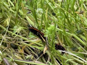 3月の修了式で校長先生が話された、ツマグロヒョウモンの幼虫がたくさん高校玄関のプランターにいます。幼虫は派手な見た目ですが、人に害はありません。ただし触ると刺激が強く不快に感じることがありますので、さわらないでください。