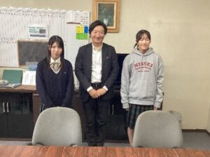 11月8日(土)オープンスクール後と10日(月)昼に、校長室で新生徒会役員と校長先生との懇談会を行いました。