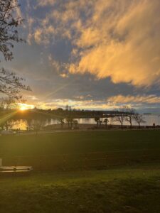 飛行機に乗った疲れが取れなかったので寝てしまいました。午前はホストファミリーに用意してもらったクロワッサンと日本から持って来たご飯とふりかけお味噌汁を食べて寝ていました。昨日もらったご飯も日本とは違う風味がしていました。午後は2時から学校のクリスマスパーティーに行きました。学校はホストファミリーの子供で女の子のアビゲルが通っている学校です。カナダの高校は12年間同じ高校で過ごしてその後大学に行くそうです。中に入ってケーキとピザを食べました。ケーキがめちゃくちゃ甘くて不思議と辛さを感じました。食べている時に、カナダや外国では周りの目は全然気にしていないように見えました。ホストファミリーと話している時も目以外を見ていないし、服装や日本に比べて目立っているかなどよりも大人でも今を楽しもうとしていました。大人が顔にペイントをしてもらいに行っていたのが驚きました。私もクラフトのワークショップをしたり、腕にペイントをしてもらったりしました。そのあと、カナダにある釧路公園につれていってもらいました。私がホームステイしているバーナビー市と釧路市が姉妹都市の提携を繋いだそうです。そこは山の上で夜のバンクーバーを見渡せてすごく綺麗でした。バンクーバーは電気代が安くてイルミネーションが街中に飾ってあるのでより綺麗でした。その後、近くのお店に行って習字を見せました。ホストマザーの名前にアナベル、クアが入っているので日本語に言い換えて「成良愛誠(なりよしゆあ)」完全に当て字にして習字で紹介しました。クアが治療するという意味なのでよくなる、アナベルが強い愛という意味です。ホストファミリーは前にも京都の留学生を迎え入れていたので特にホストマザーは今日に興味もっていてたまに日本語で話してくださいます。また、文化についての理解もあって過ごしやすいです。次に機会があったら折り紙を紹介したいです。