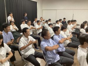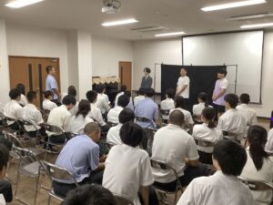 8月29日、2年生総合コースでは、お笑いタレントさん3名に来ていただき、進路に関する面白くてためになる講演会を行いました。